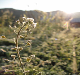 朝、霜で真っ白でした。