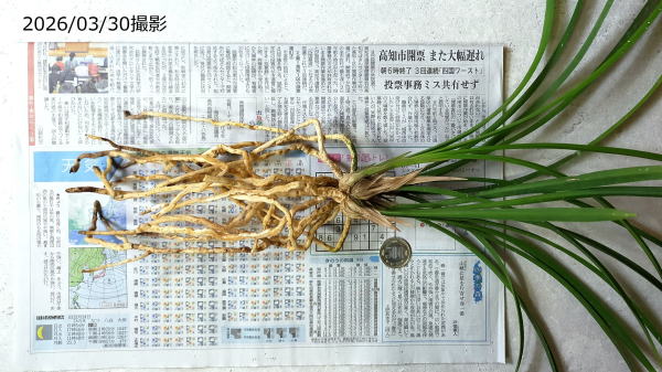 今回ご紹介したのは、まとめて入手した、〈払越の赤〉複数株のうちの一つです。花茎の切除跡が確認できます。葉状からすると払越系統の平均的な株(スタンダードなタイプ)の可能性が高いでしょう。