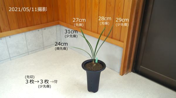 商品は2条立の小振りな中苗で、状態の良い新芽が付いています。少し葉先を傷めているのは残念です。