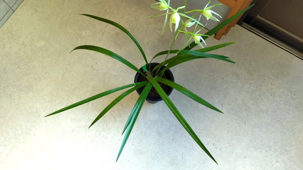 高知県宿毛市橋上町坂本(西谷)産。日本寒蘭において空前絶後の名花である素心系金鵄! 乳白色に咲く素心花を目の当たりにした、当時の愛好家さんの驚きは想像に難くありません。