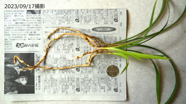 2条立相当の苗を載せました。全体的な根の総量が足りているので、短い根が1本しかない古木でも葉を切らずに残しています。