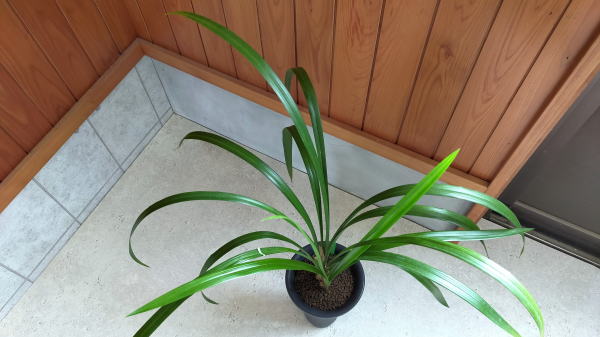 徳島県海部郡美波町の産。広弁広舌タイプの更紗。豪華な印象の三角咲大輪花です。花間を広くとり葉上を抜きます。 このところ上位入賞の連続で、存在感を増しています。