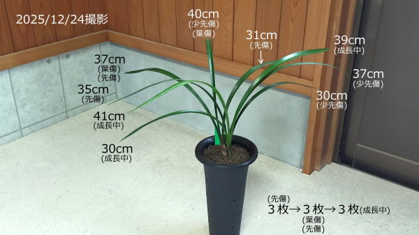 3条立の中成木株を載せました。前年に仕上がった3枚葉のうち2枚に、葉脈に沿った黒い傷が見られますが、これは成長過程で受けたストレスに由るものではないかと。 他の部分は、特に新木はとてもきれいです。