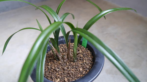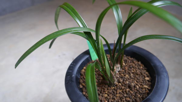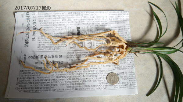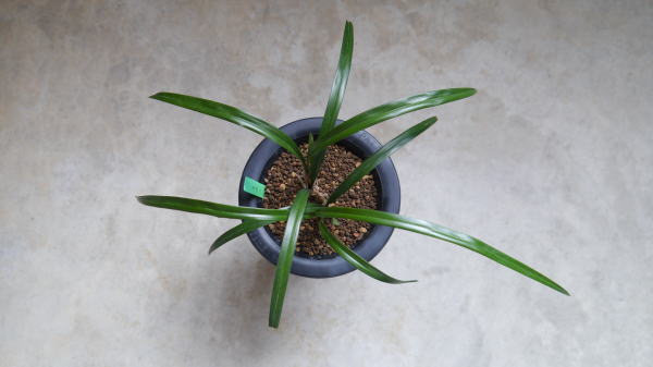 徳島県宍喰町の産。花弁の中心に赤褐色の線が入りますが、 濃緑で花間のよい中輪。