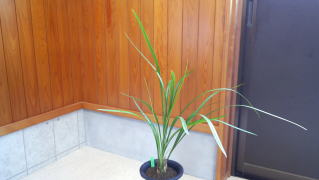 | 命名登録:平成22年 阿波寒蘭会(272号) 高知県安芸郡東洋町野根の産。和ろうそく みたいに鈍いツヤ感をした、色素の薄い葉芸品で、一般的な黄葉(黄金葉)と一線を画します。 〈茜錦〉の中成木株を載せました。 「参考画像」株の前から3番目と4番目の2条立です。 |