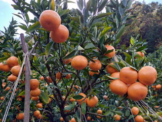 当園は、10月から12月まで段階的に 季節季節の味が楽しめるように 極早生種・早生種・普通種を栽培してます。 園地は大きく分けて、2箇所ありますが 何処も、海から数百メートルの所にあり、 潮風の影響を受け、おいしいみかんが 実ります。 2026年 2月撮影 |