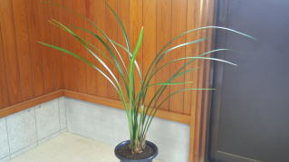 | 命名登録:平成14年 宮崎県蘭協会(1号) 青花の平肩咲き巨大輪、葉は大柄でやや肉厚。 一般的に大型の青花は高い完成度を期待できないものですが、この品種は いやな癖もなく良花の基準を満たしています。 イモ付きの中成木1条、優秀な種木を載せました。 |